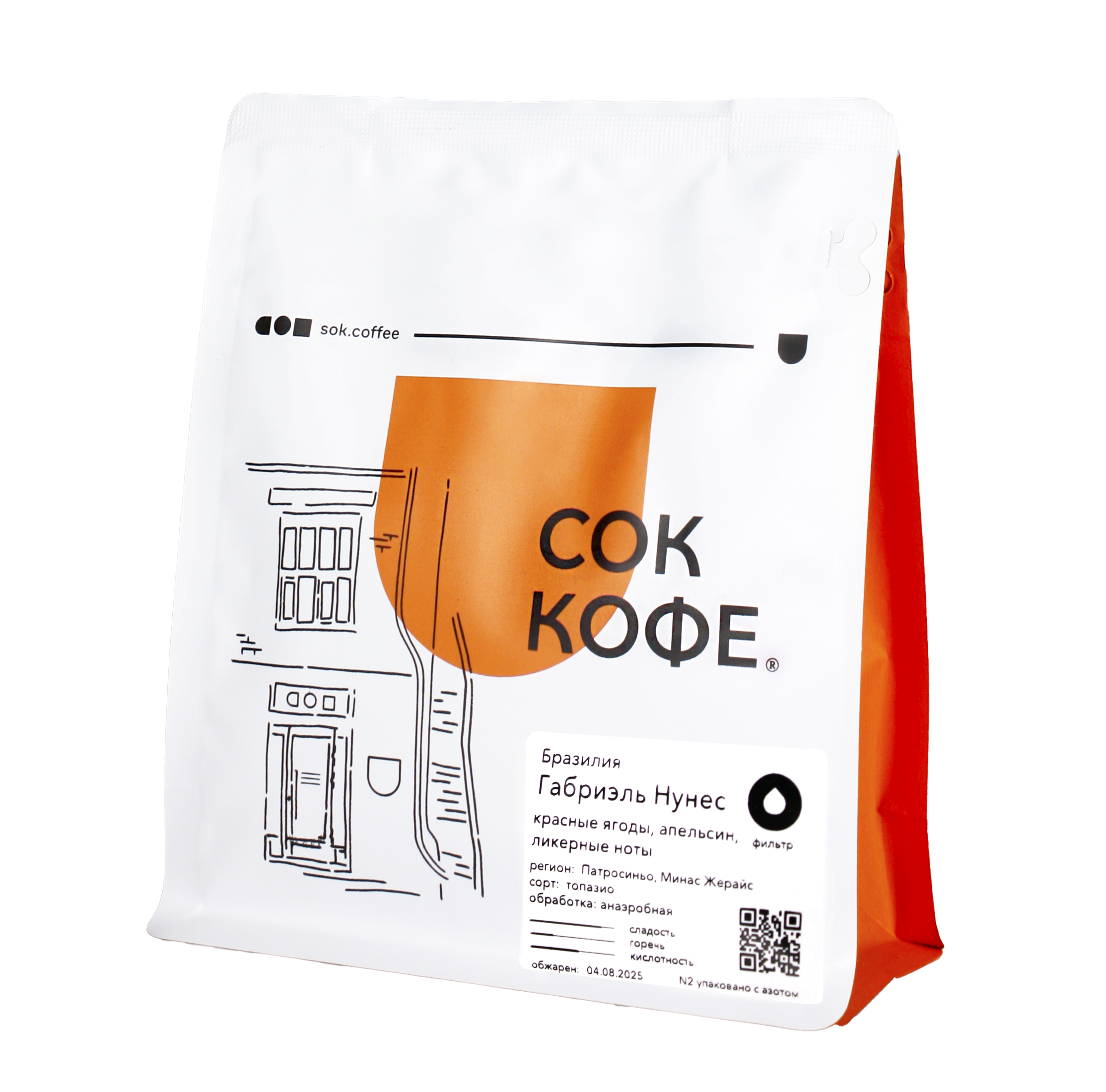 Кофе от фермера Габриэля Нунеса, в этот раз эксперимент анаэробной ферментации. Кофе с плотным телом, интенсивной сладостью, во вкусе чувствуются ливерные ноты, цитрусовые и вишневая пастила.